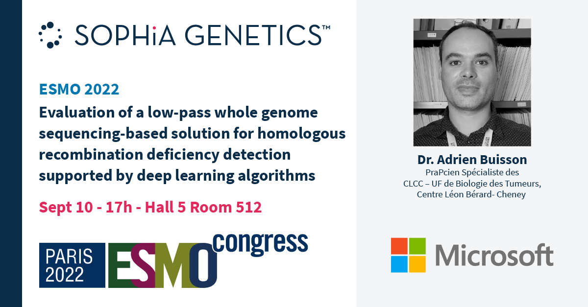 What’s New? CE-IVD Oncology Applications by SOPHiA GENETICS™ Alexander Kurze, PhD Senior Director Product Management, SOPHiA GENETICS Evaluation of a low-pass whole genome sequencing-based solution for homologous recombination deficiency detection supported by deep learning algorithms Dr. Adrien Buisson Praticien Spécialiste des CLCC – UF de Biologie des Tumeurs, Centre Léon Bérard- Cheney